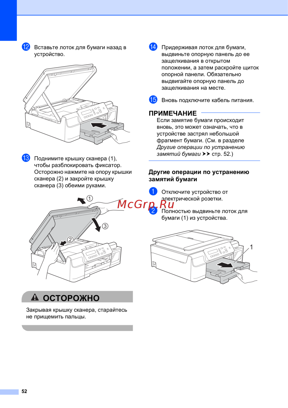 n Придерживая лоток для бумаги,