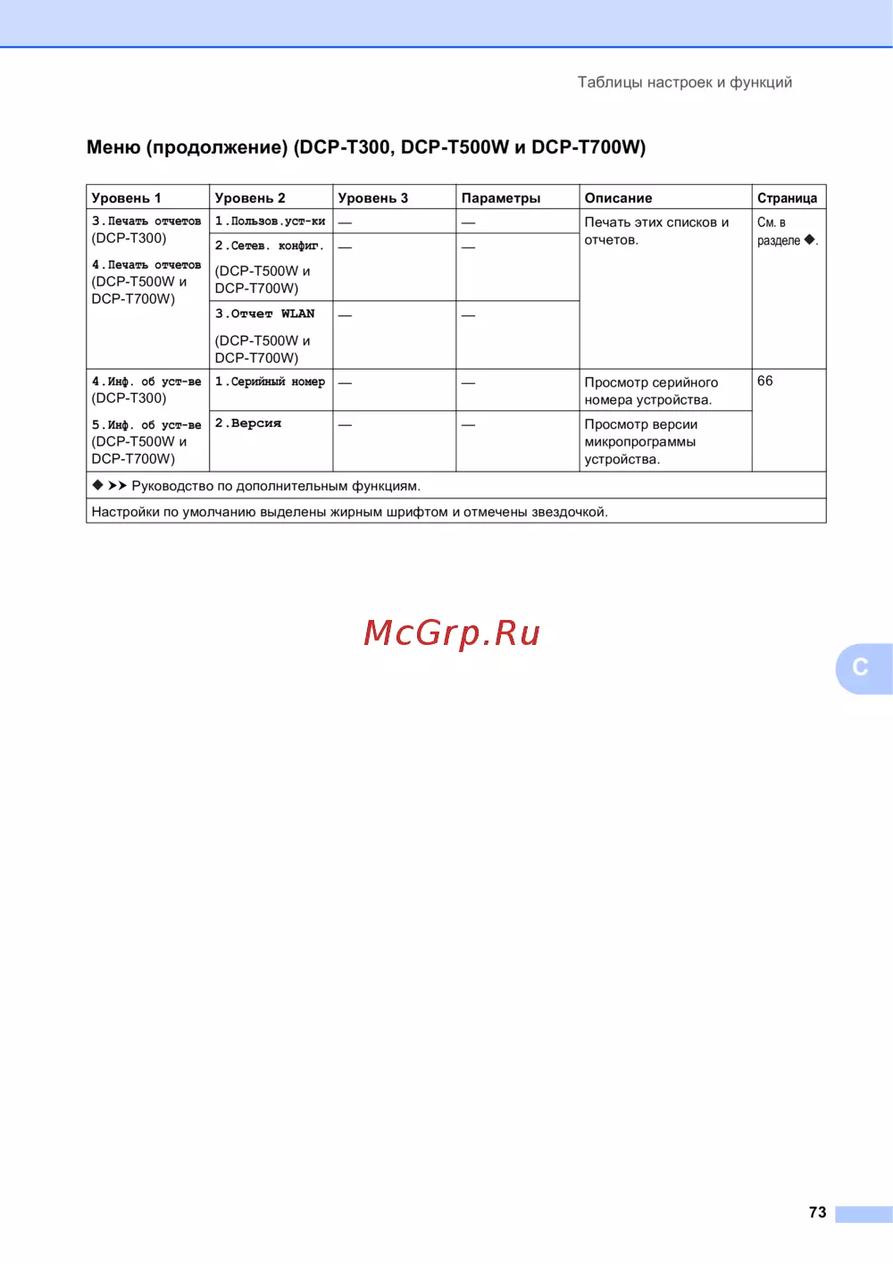 - Меню продолжение dcp t300 dcp t500w и dcp t700w p.81