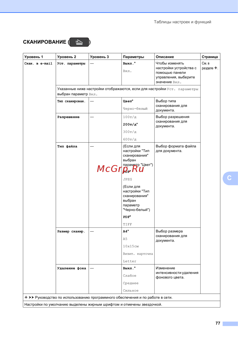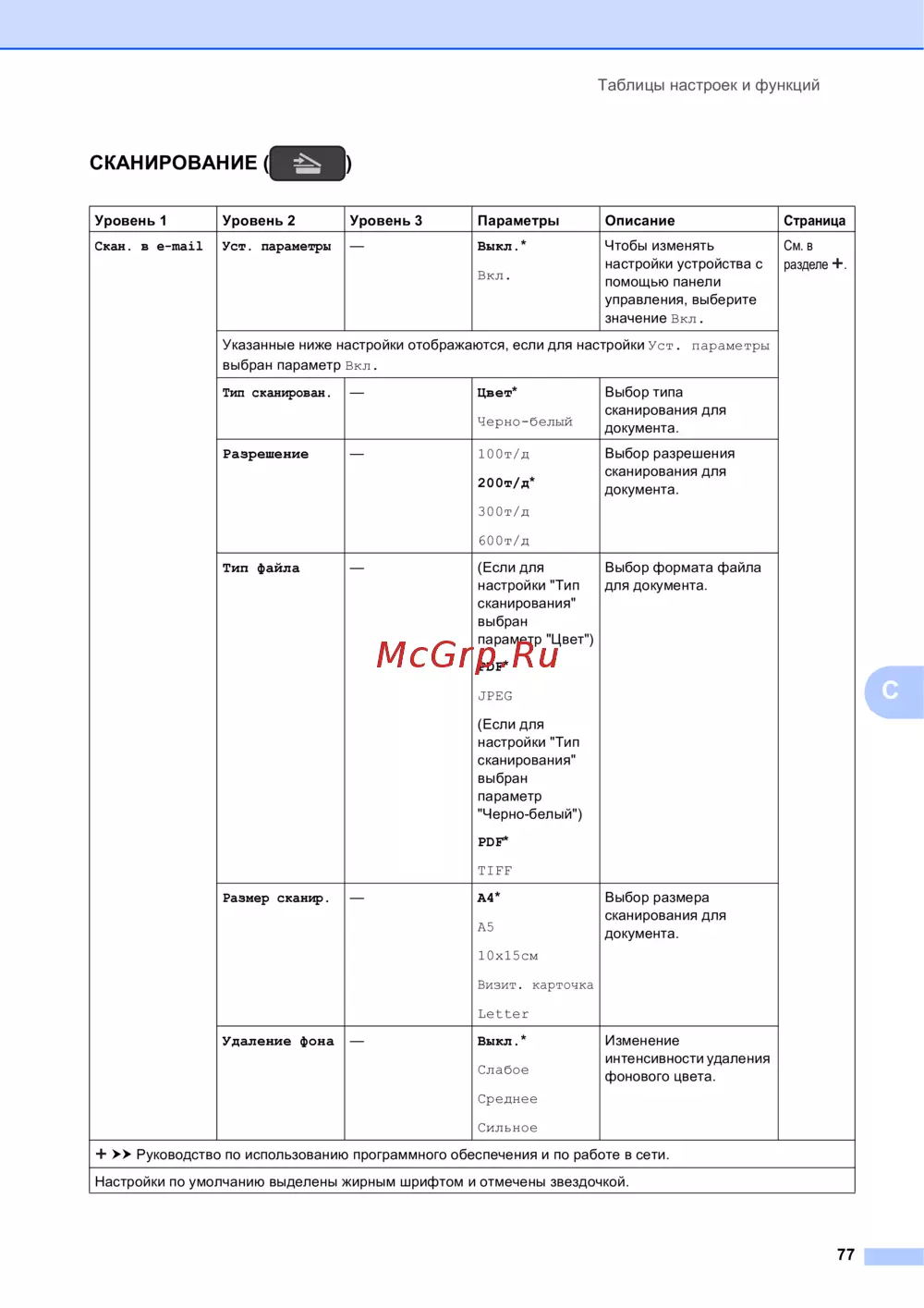 Изучите параметры и функции сканирования, включая типы, разрешение и форматы файлов. Узнайте, как настроить устройство для достижения наилучших результатов.