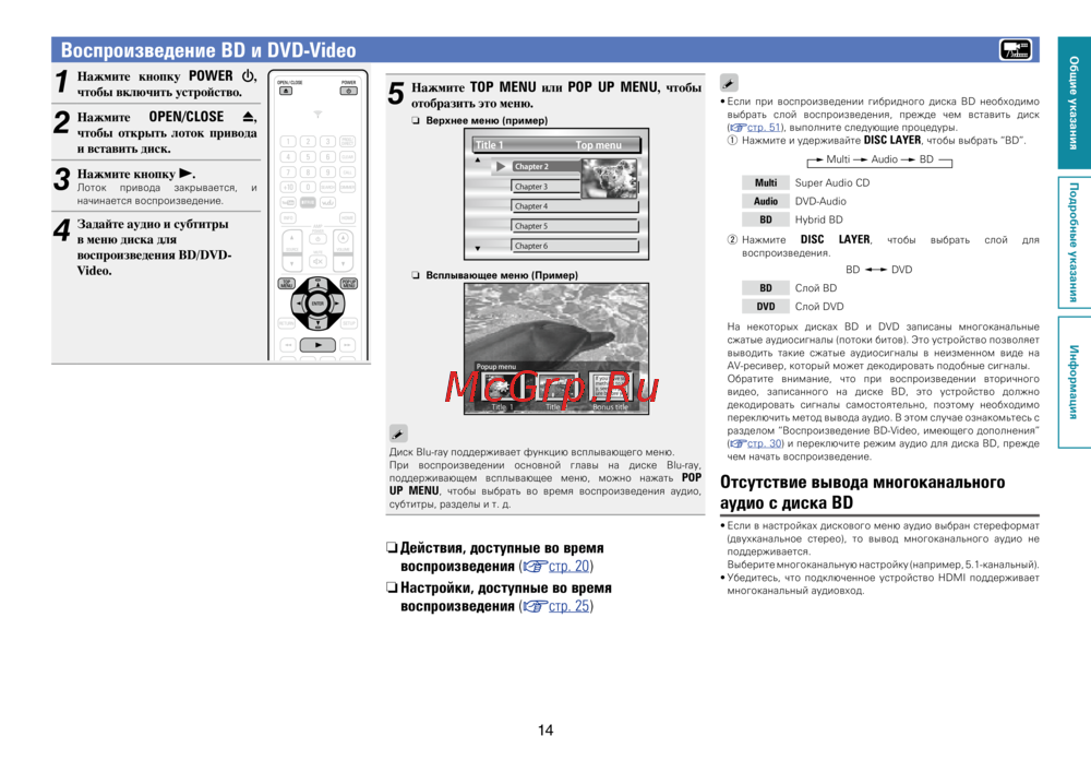 Воспроизведение BD и DVD-Video