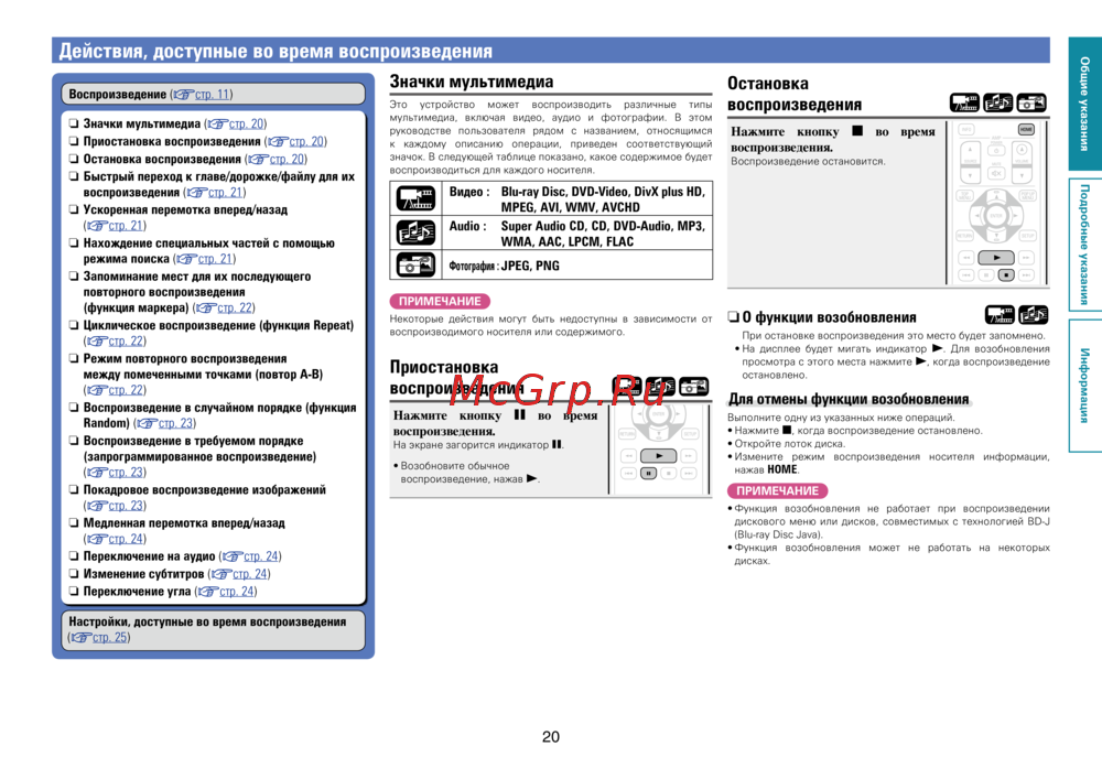 Узнайте о 20 действиях, доступных во время воспроизведения мультимедиа. Остановите, приостановите или измените режим воспроизведения с помощью простых команд.