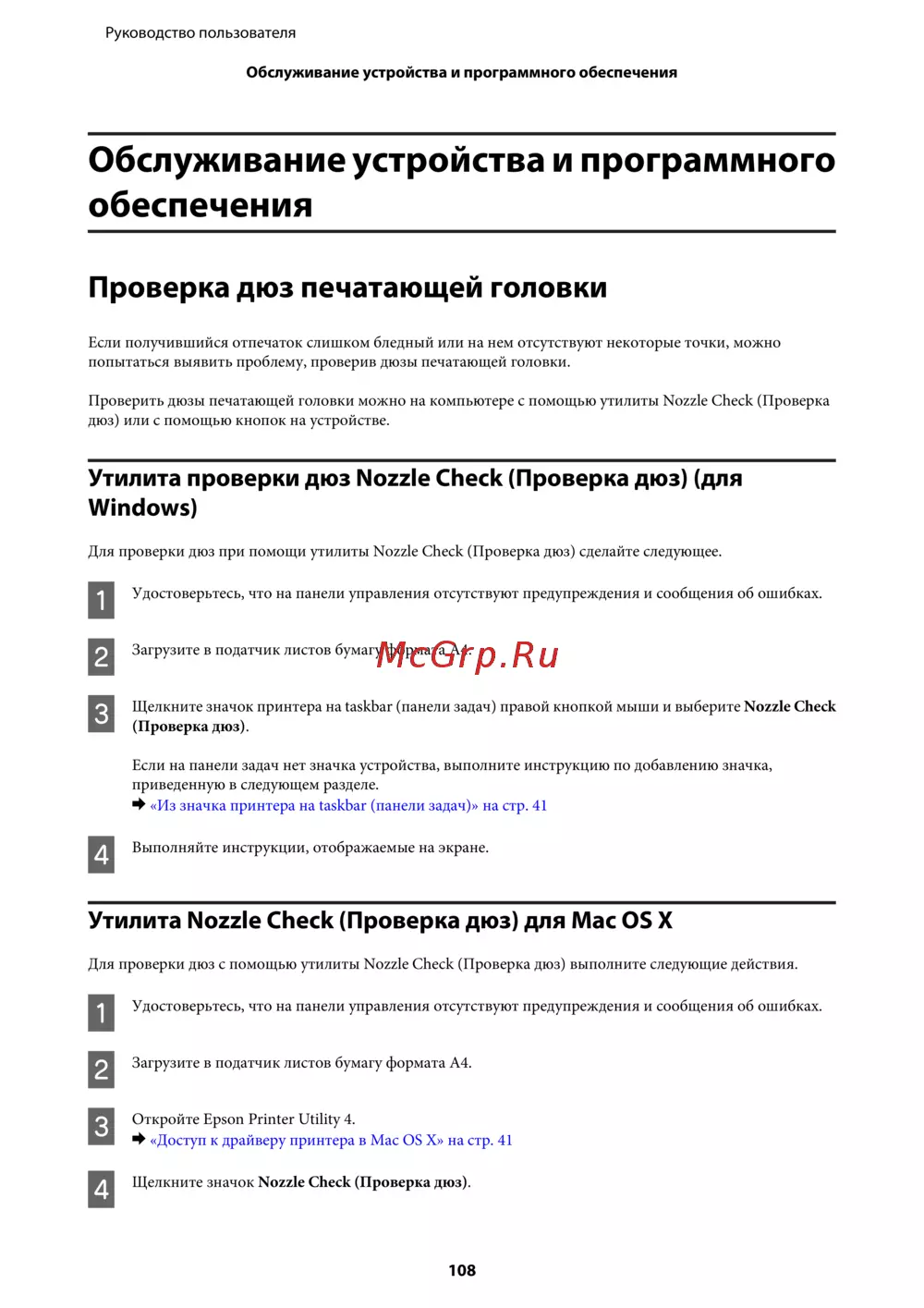 Утилита Nozzle Check (Проверка дюз) для Mac OS X