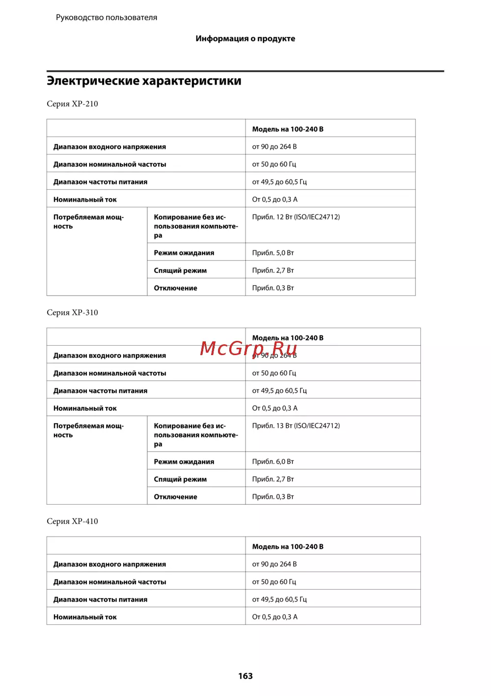 Epson Expression Home XP-313 [163/175] Электрические характеристики