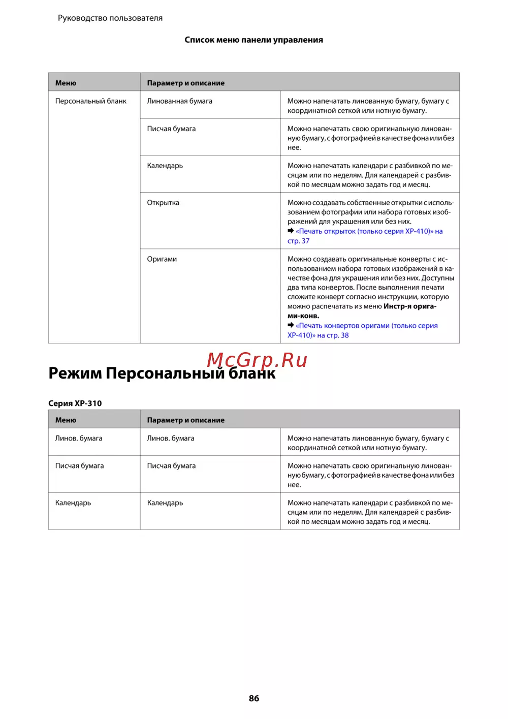& «Печать открыток (только серия XP-410)» на