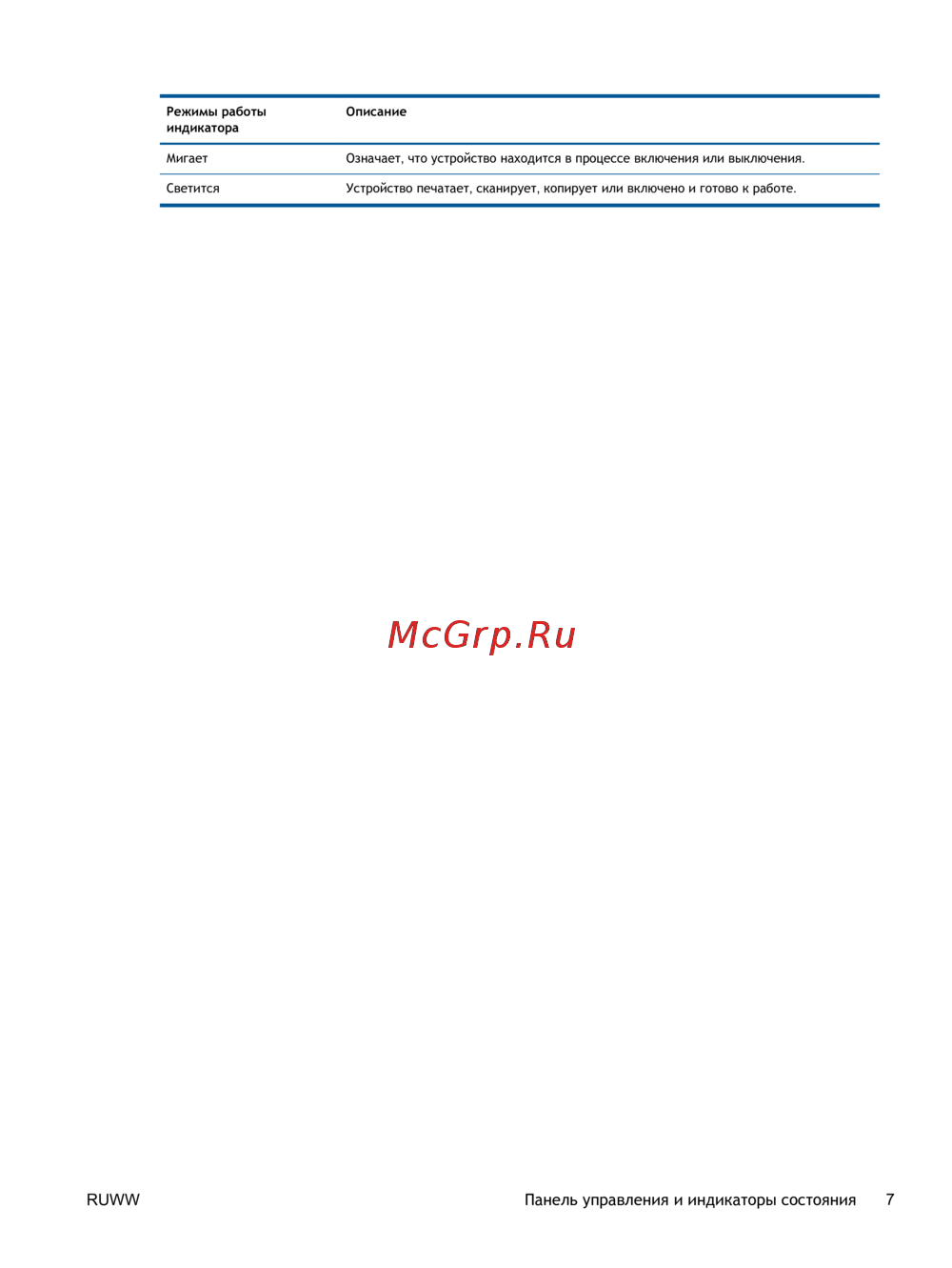 Светится Устройство печатает, сканирует, копирует или включено и готово к работе.