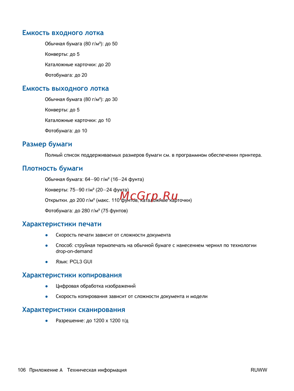 HP Deskjet Ink Advantage 2645 AIO — технические характеристики печати, копирования и сканирования [110/158]