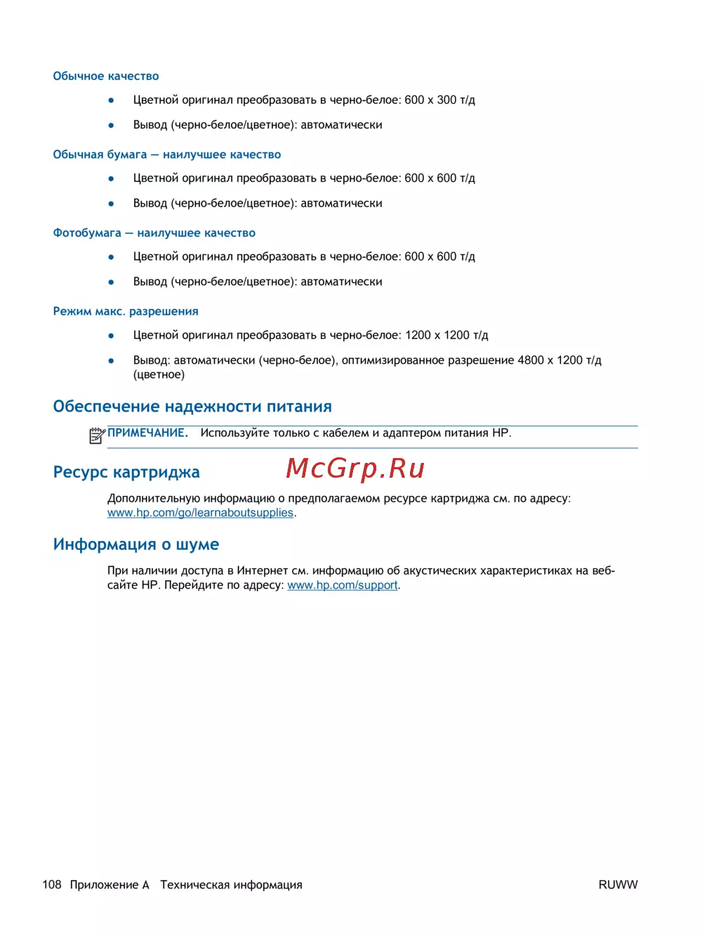 - Характеристики печати p.110