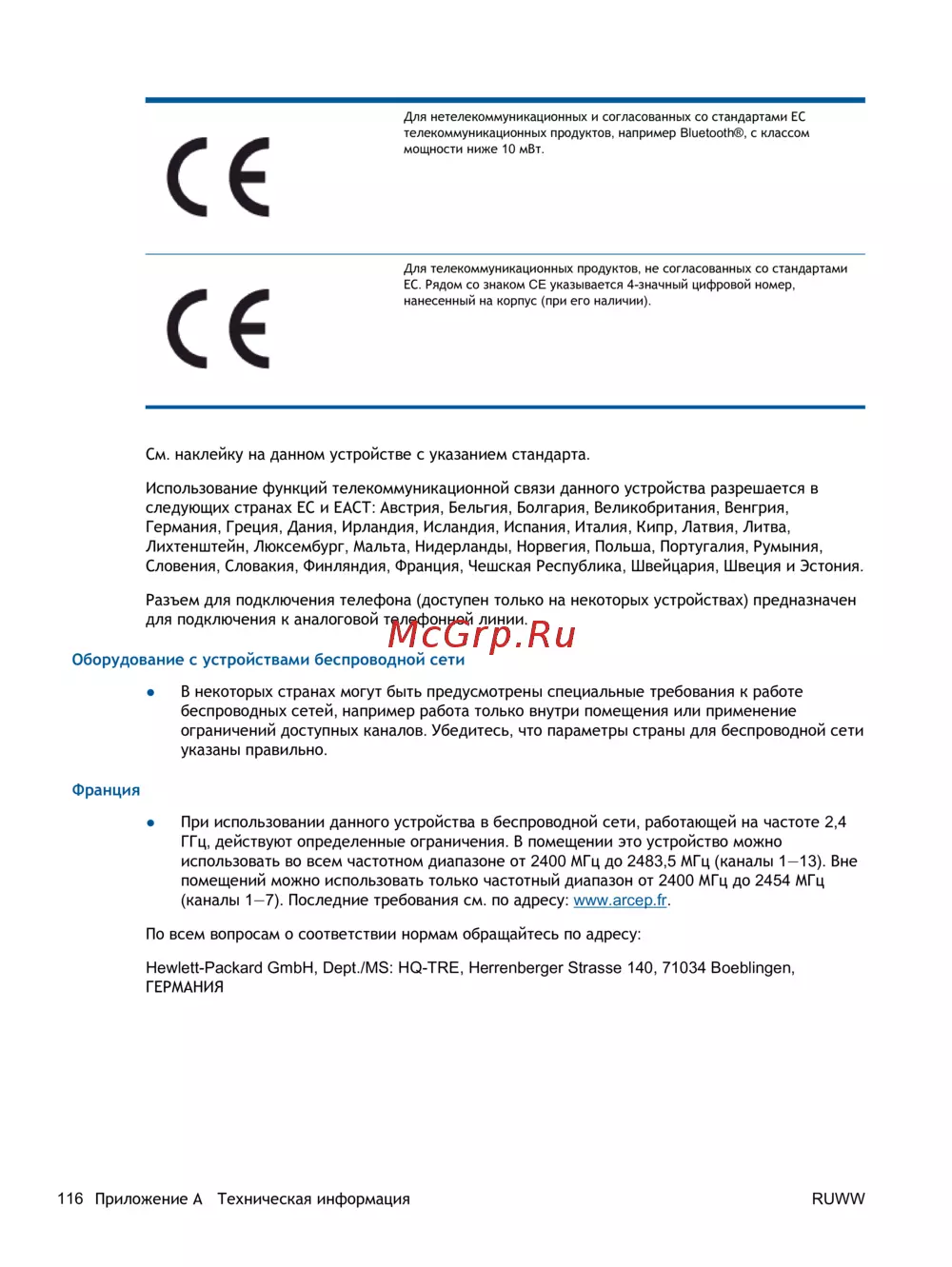 HP Deskjet Ink Advantage 2645 AIO — информация о телекоммуникационных продуктах и их использовании в ЕС [120/158]