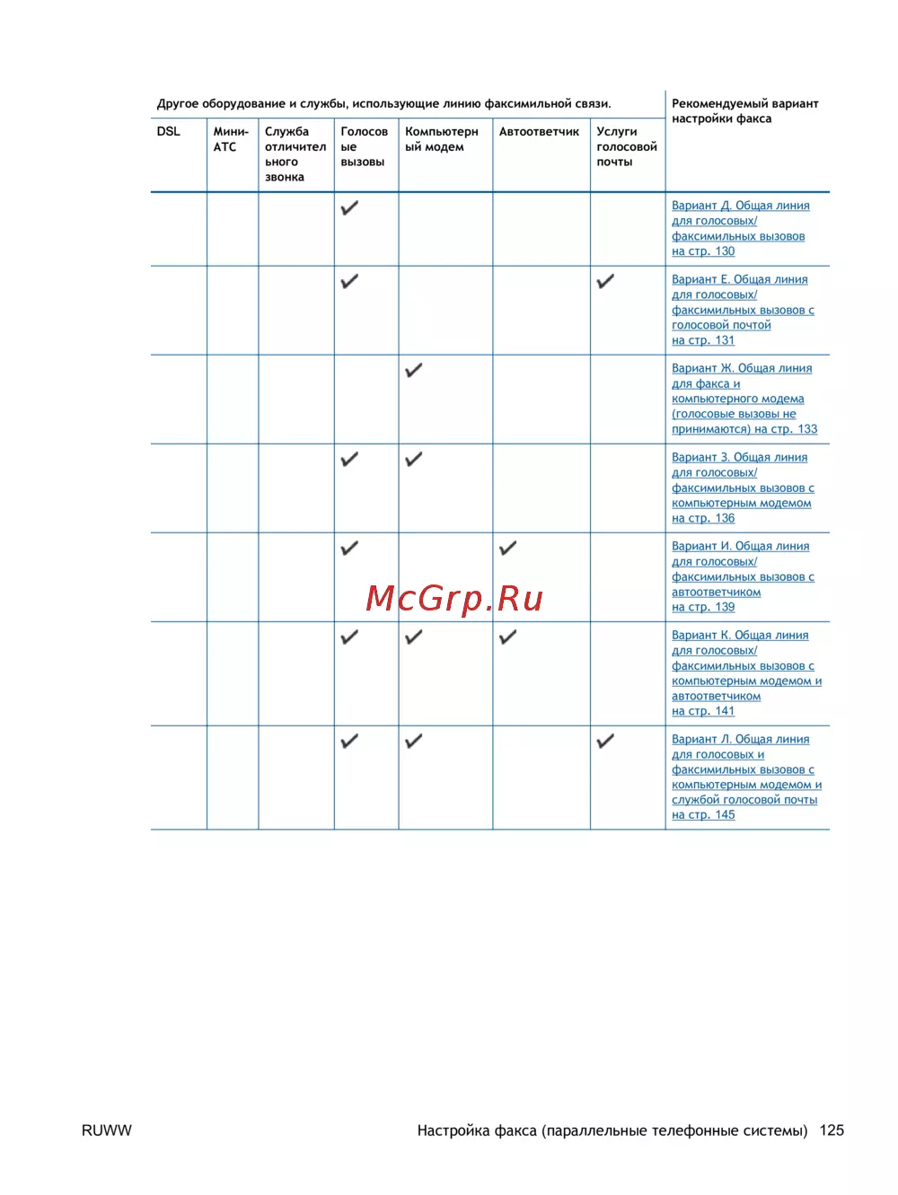 - Вариант ж общая линия для факса и компьютерного модема голосовые вызовы не принимаются p.137