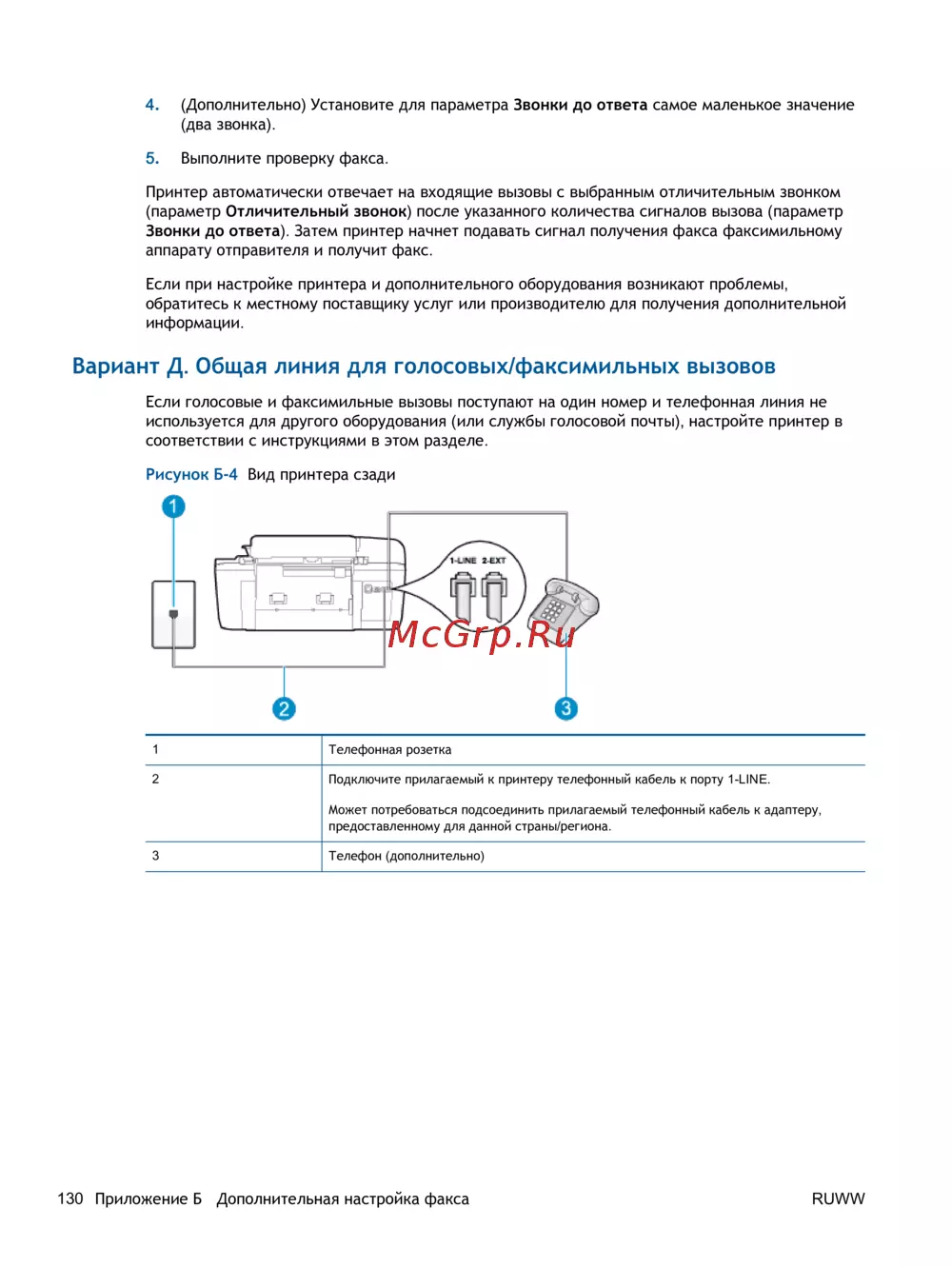- Вариант г использование одной линии для факса и службы отличительного звонка p.132
