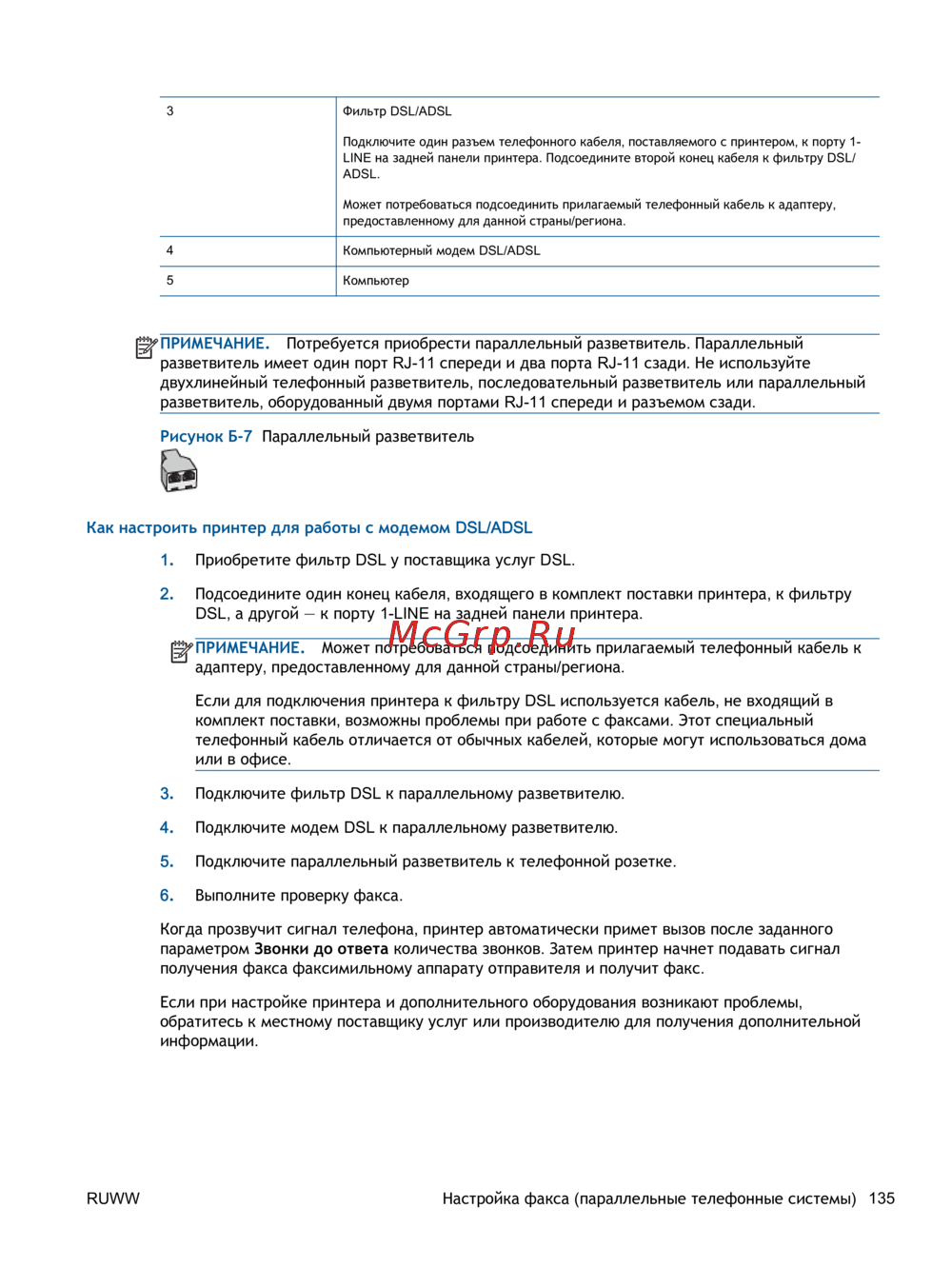- Вариант б настройка принтера при использовании линии dsl p.130