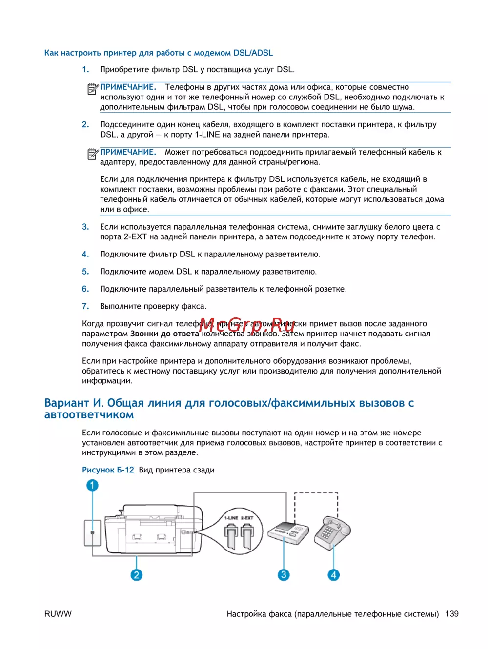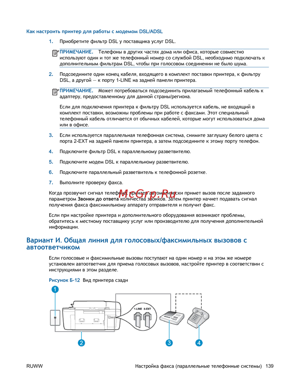 - Вариант б настройка принтера при использовании линии dsl p.130