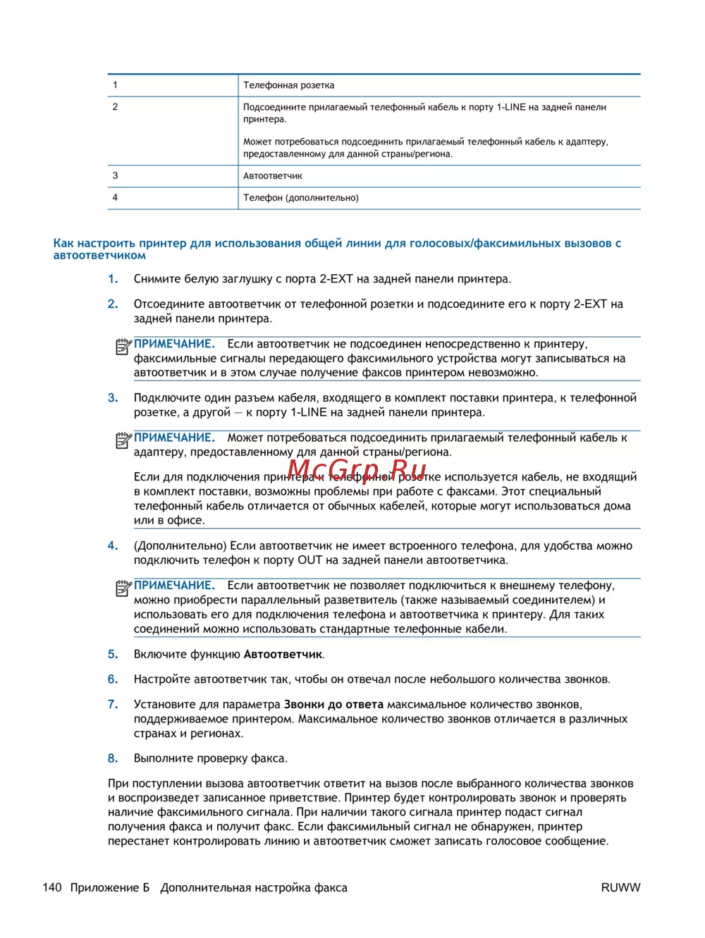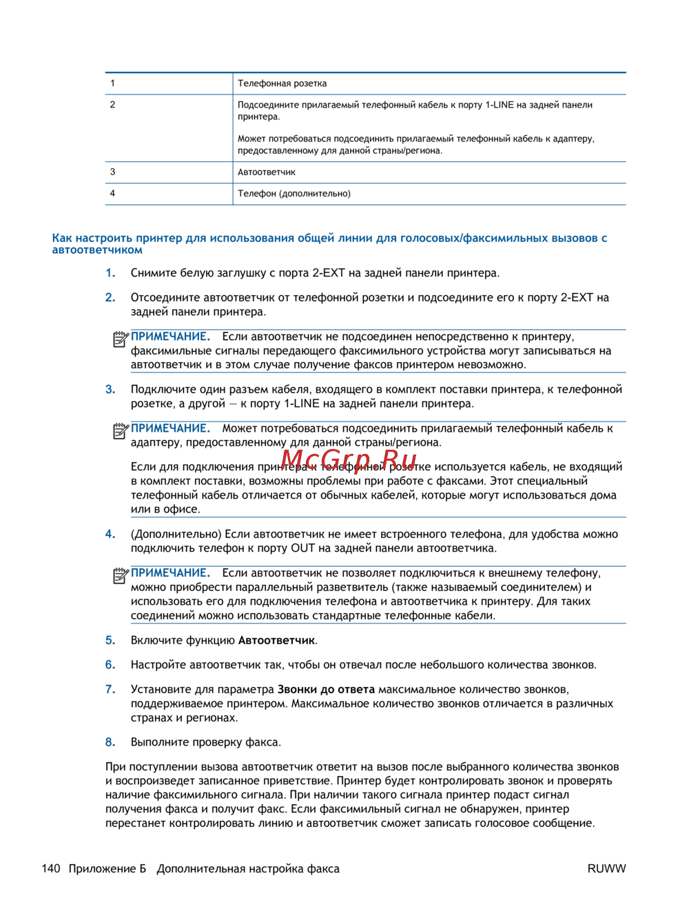 - Автоответчик для автоответчика принимающего голосовые вызовы используется тот же телефонный номер который используется принтером для обработки факсимильных вызовов p.128
