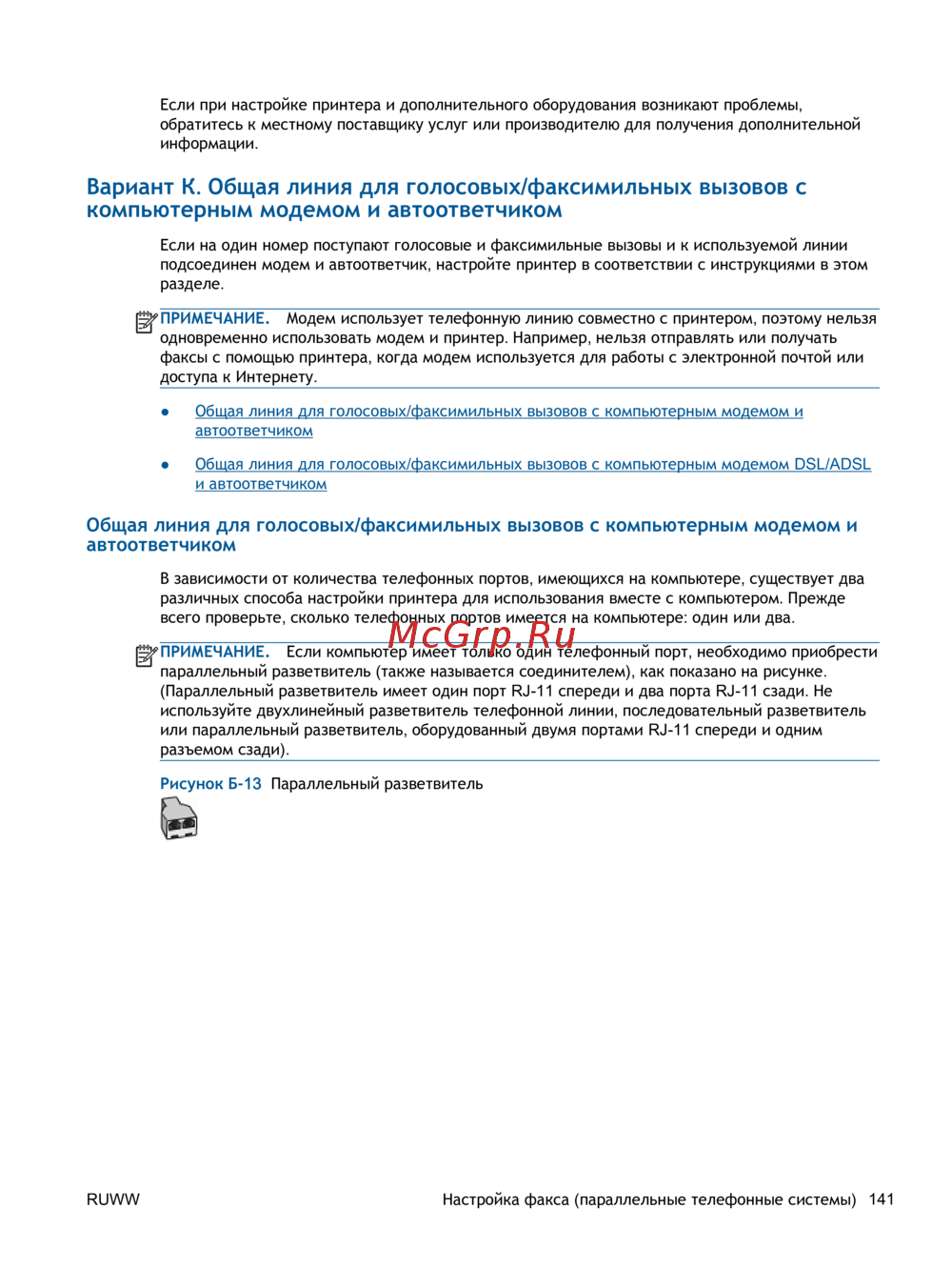 - Вариант ж общая линия для факса и компьютерного модема голосовые вызовы не принимаются p.137