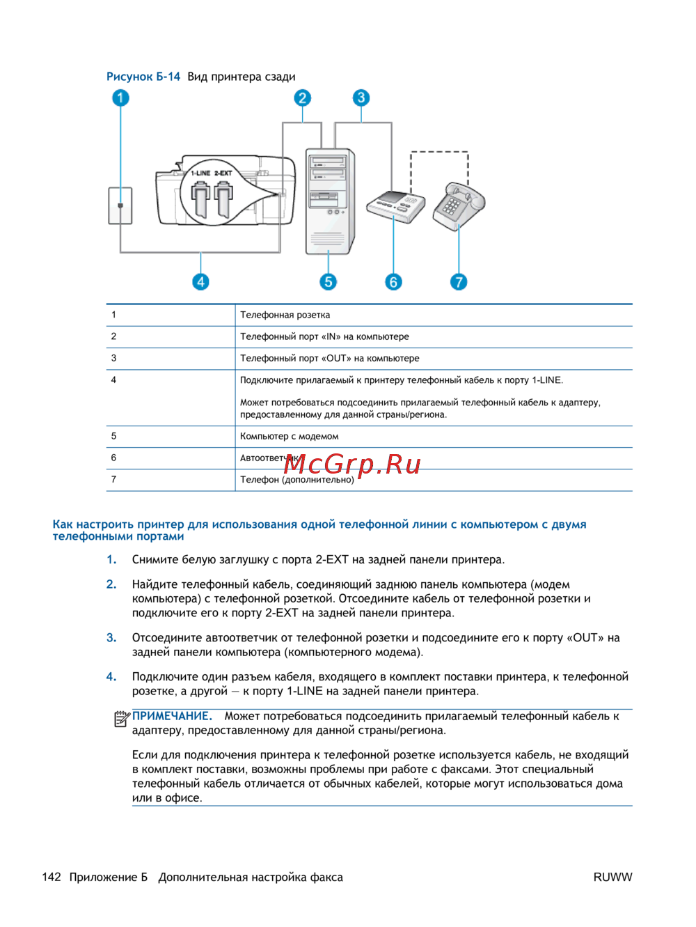 Как настроить принтер для использования одной телефонной линии с компьютером с двумя