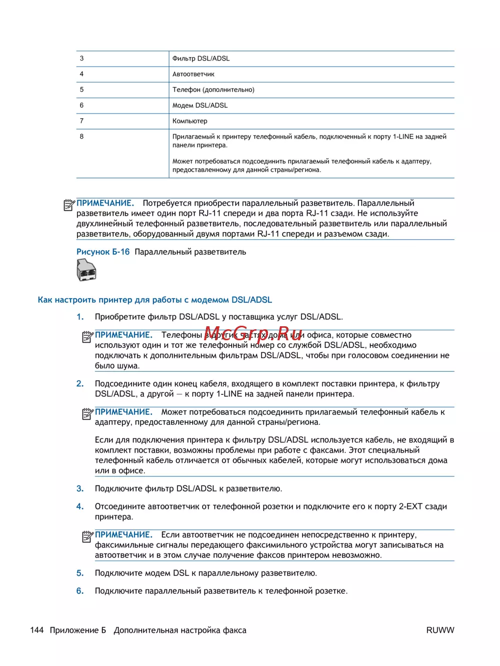- Вариант б настройка принтера при использовании линии dsl p.130
