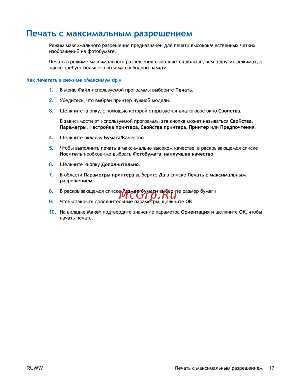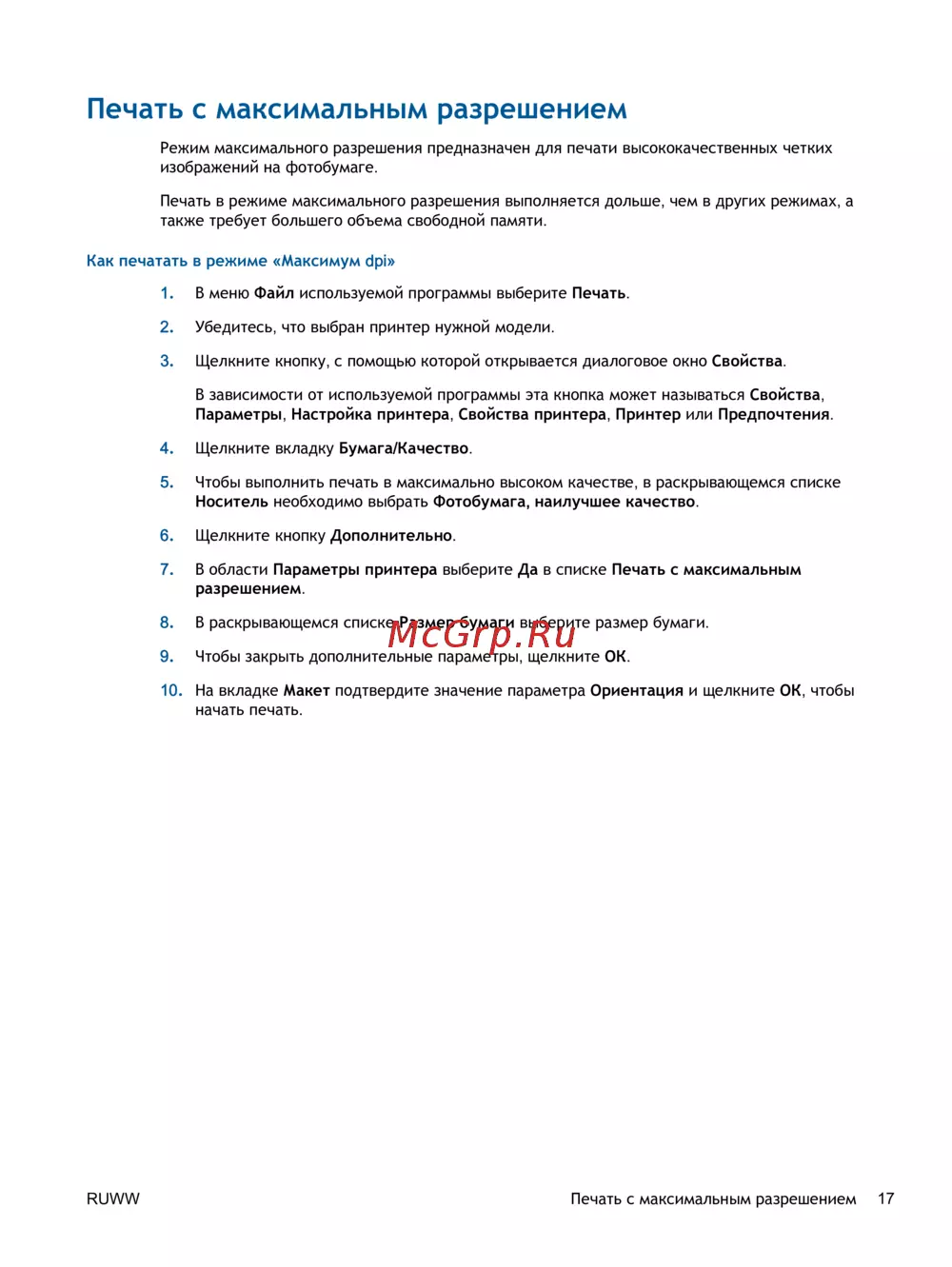 RUWW Печать с максимальным разрешением