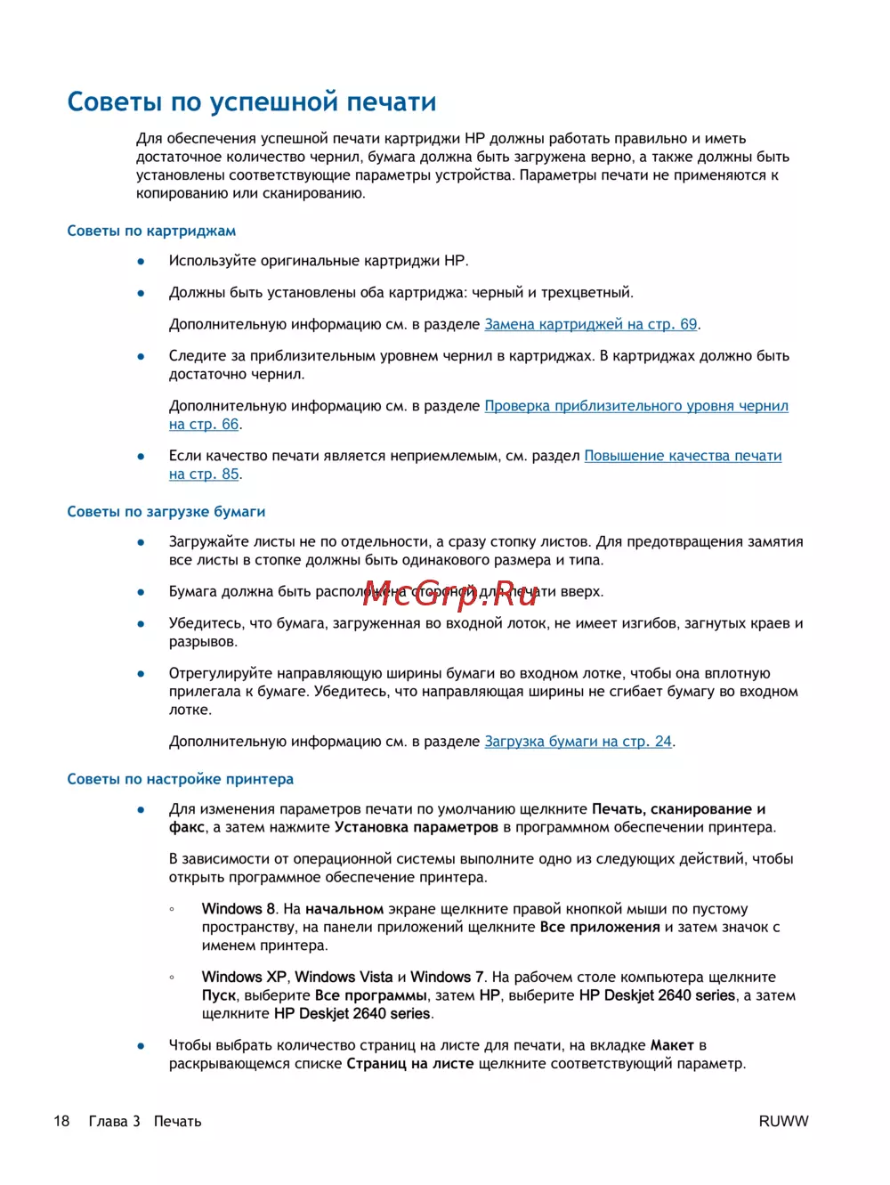 HP Deskjet Ink Advantage 2645 AIO — советы по успешной печати: картриджи, бумага и настройки [22/158]