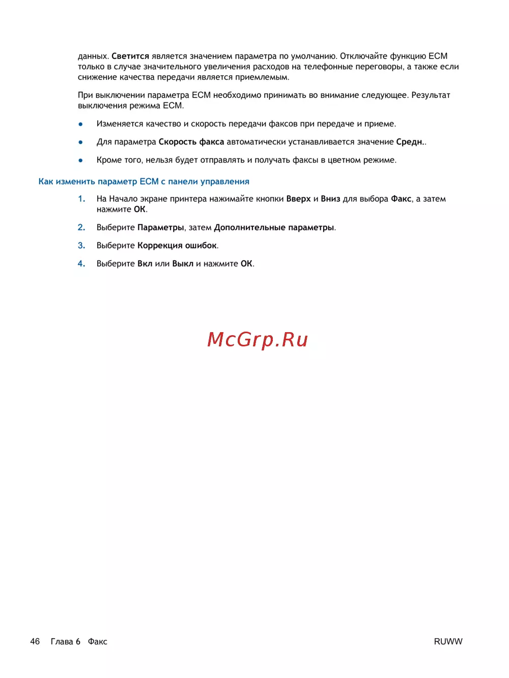 HP Deskjet Ink Advantage 2645 AIO — настройка параметра ECM для факсов: руководство пользователя [50/158]