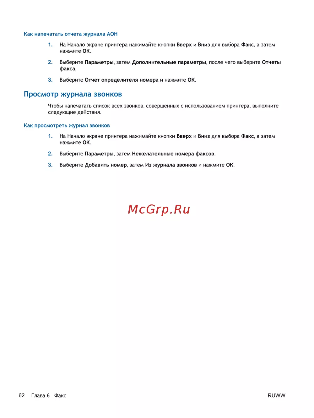 HP Deskjet Ink Advantage 2645 AIO — как напечатать отчеты и просмотреть журнал звонков на принтере [66/158]