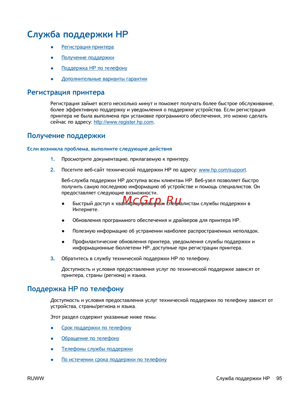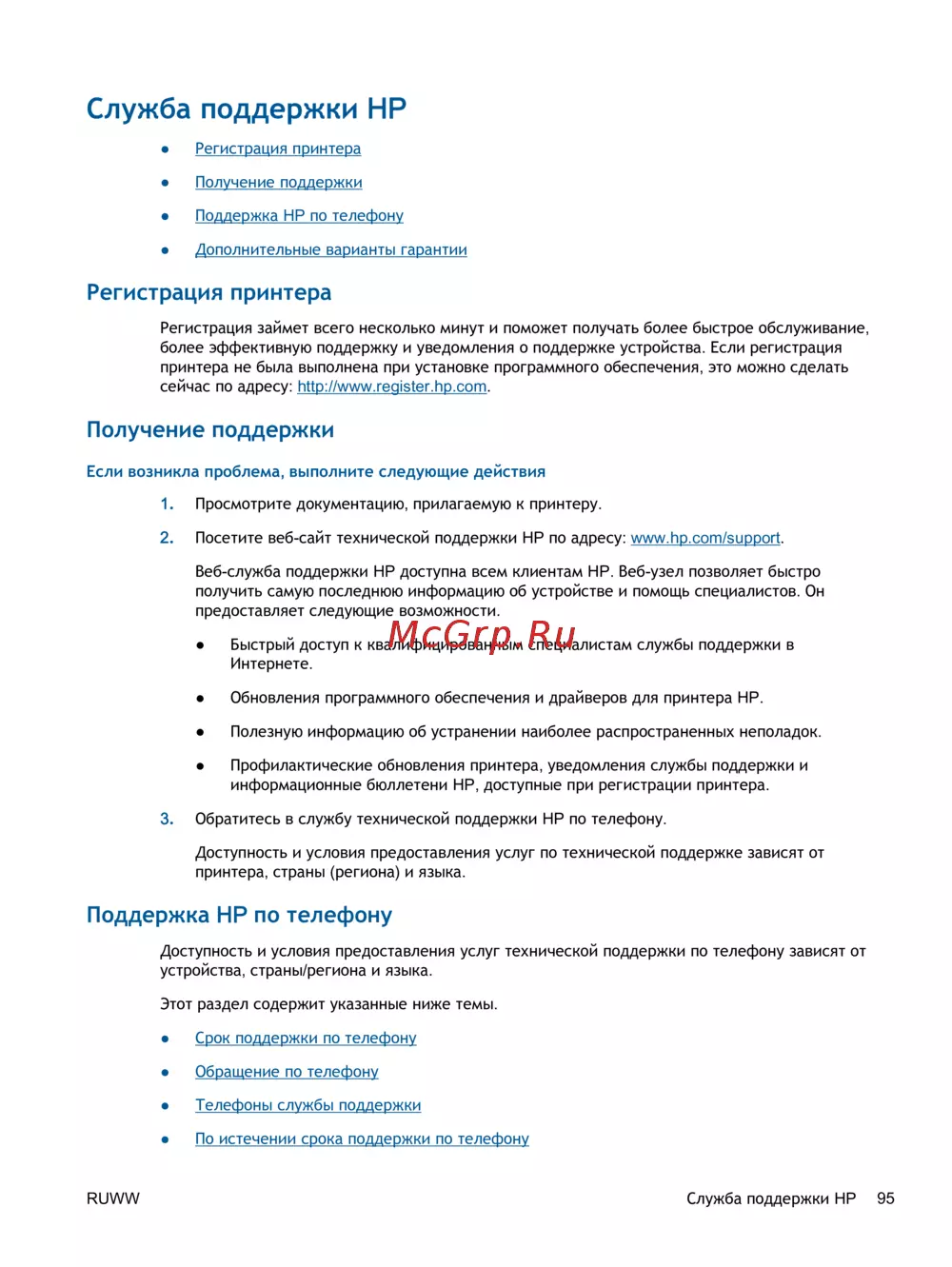 RUWW Служба поддержки HP