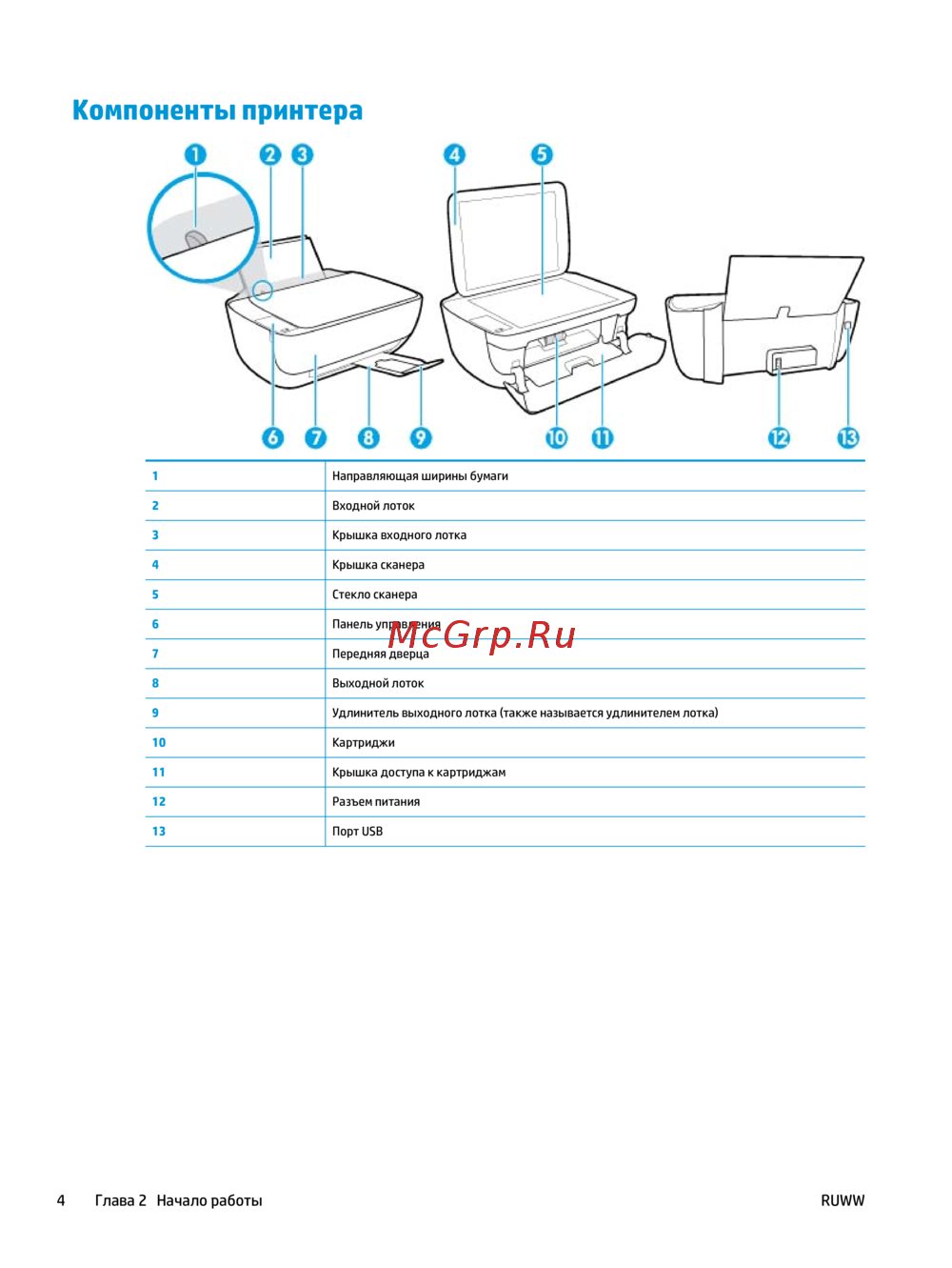 HP DeskJet Ink Advantage 3635 [10/134] Компоненты принтера