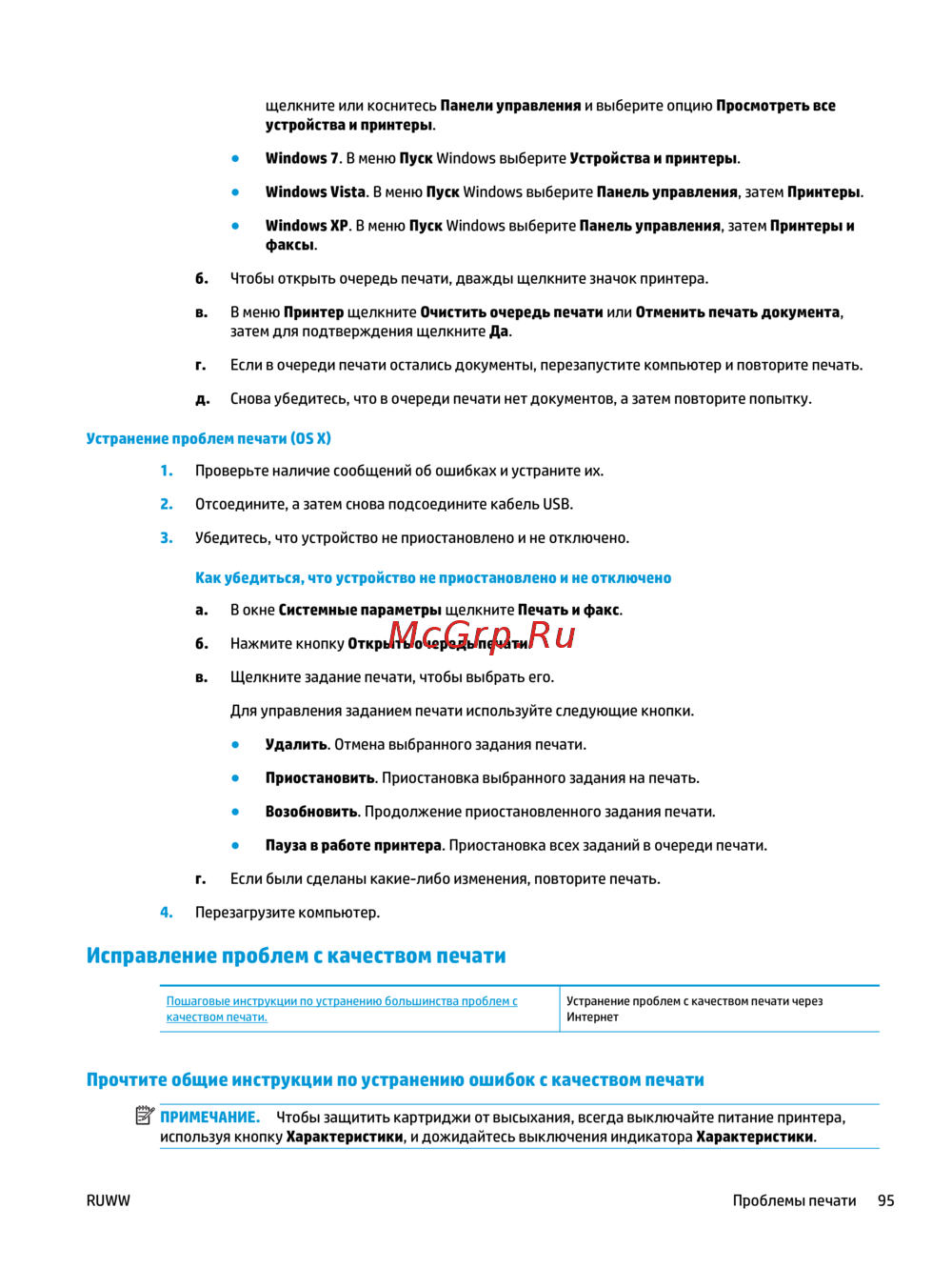 - Примечание программа hp print and scan doctor для диагностики печати и сканирования и мастера hp устранения неполадок через интернет могут быть доступны не на всех языках p.107