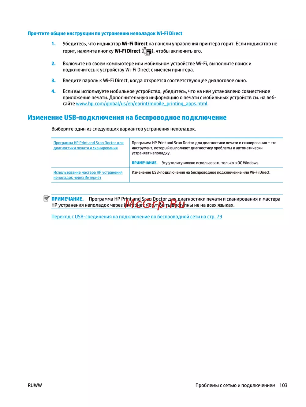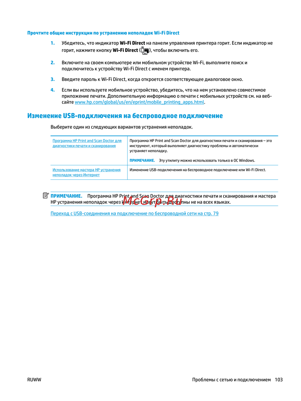 - Примечание программа hp print and scan doctor для диагностики печати и сканирования и мастера hp устранения неполадок через интернет могут быть доступны не на всех языках p.107