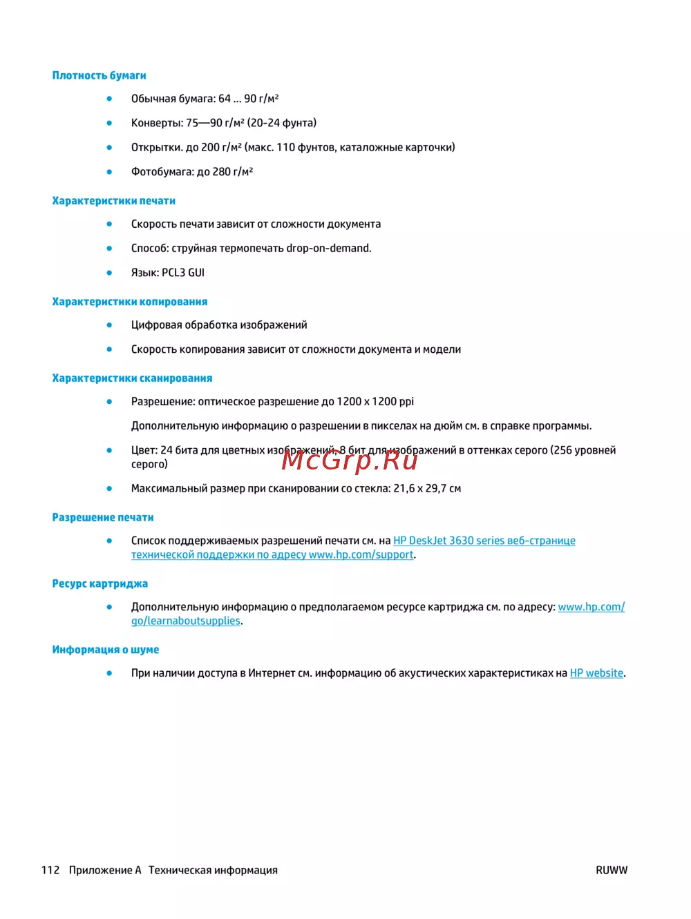 HP DeskJet Ink Advantage 3635 — характеристики бумаги и печати: плотность, скорость и разрешение [118/134]