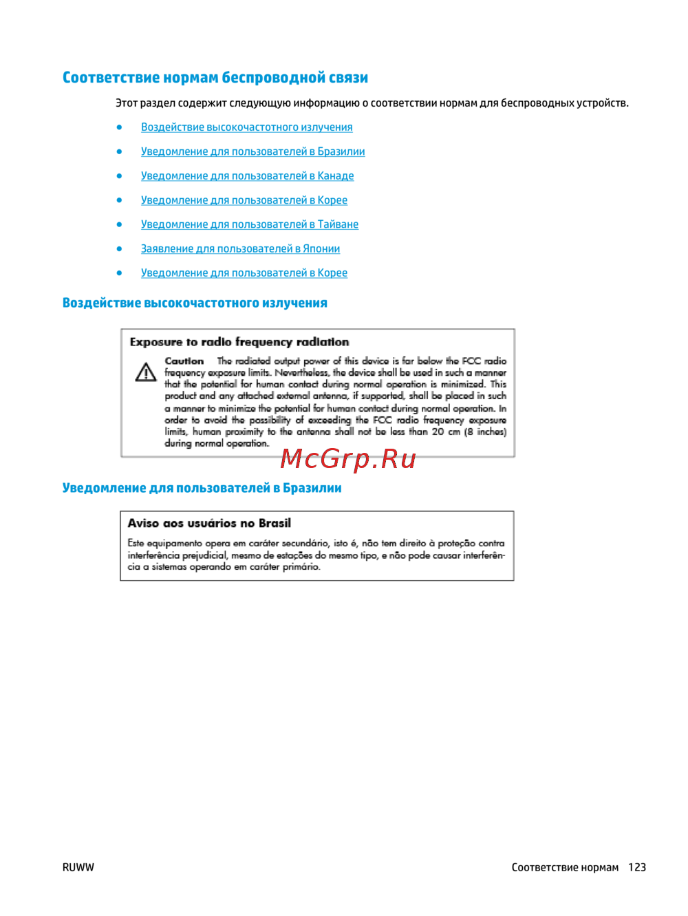 - Соответствие нормам беспроводной связи p.129
