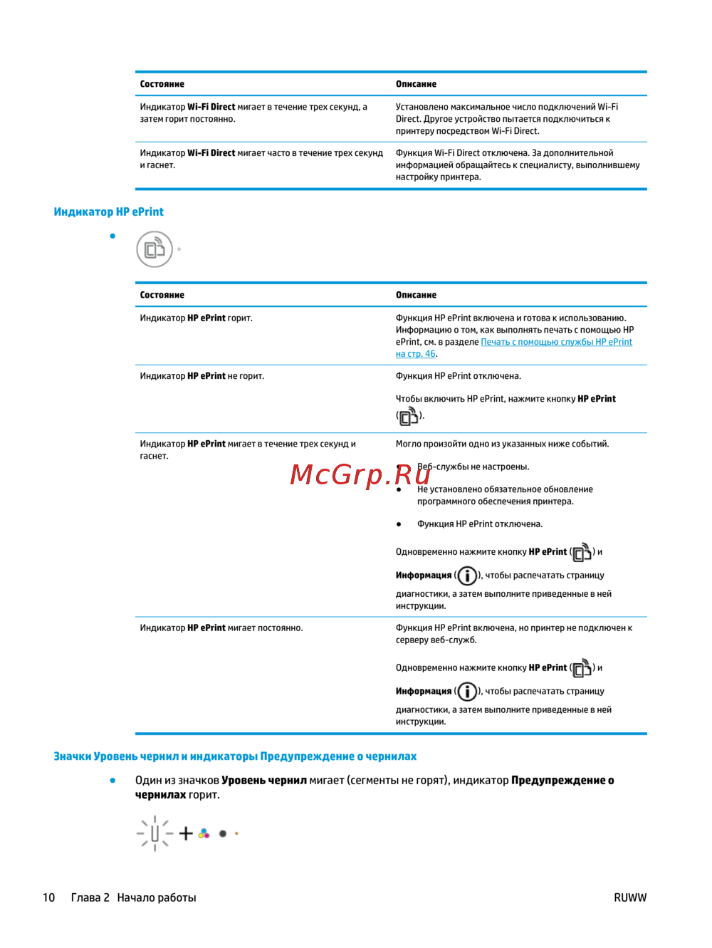 ![HP DeskJet Ink Advantage 3635 [16/134] Значки уровень чернил и индикаторы предупреждение о чернилах](/views2/1202875/page16/bg10.png)