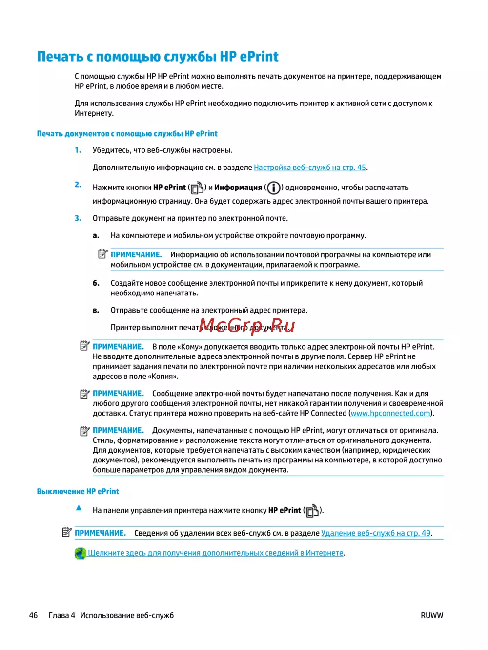 ПРИМЕЧАНИЕ. Документы, напечатанные с помощью HP ePrint, могут отличаться от оригинала.