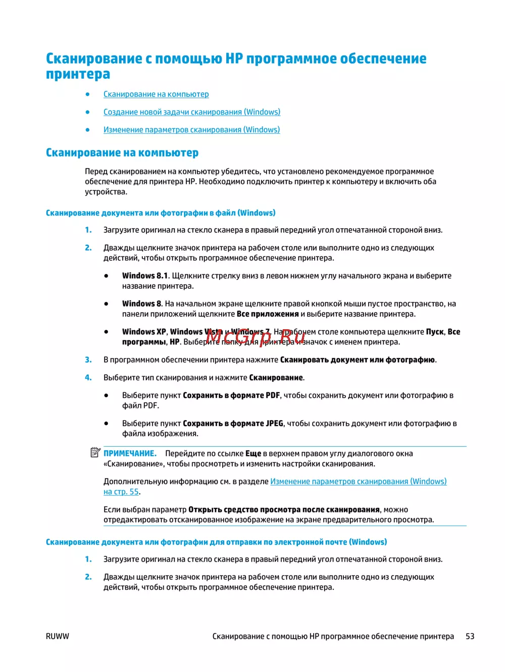 RUWW Сканирование с помощью HP программное обеспечение принтера 53