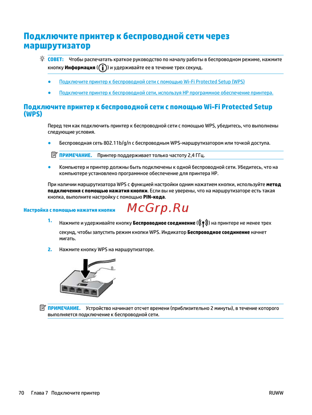 Подключите принтер к беспроводной сети с помощью Wi-Fi Protected Setup