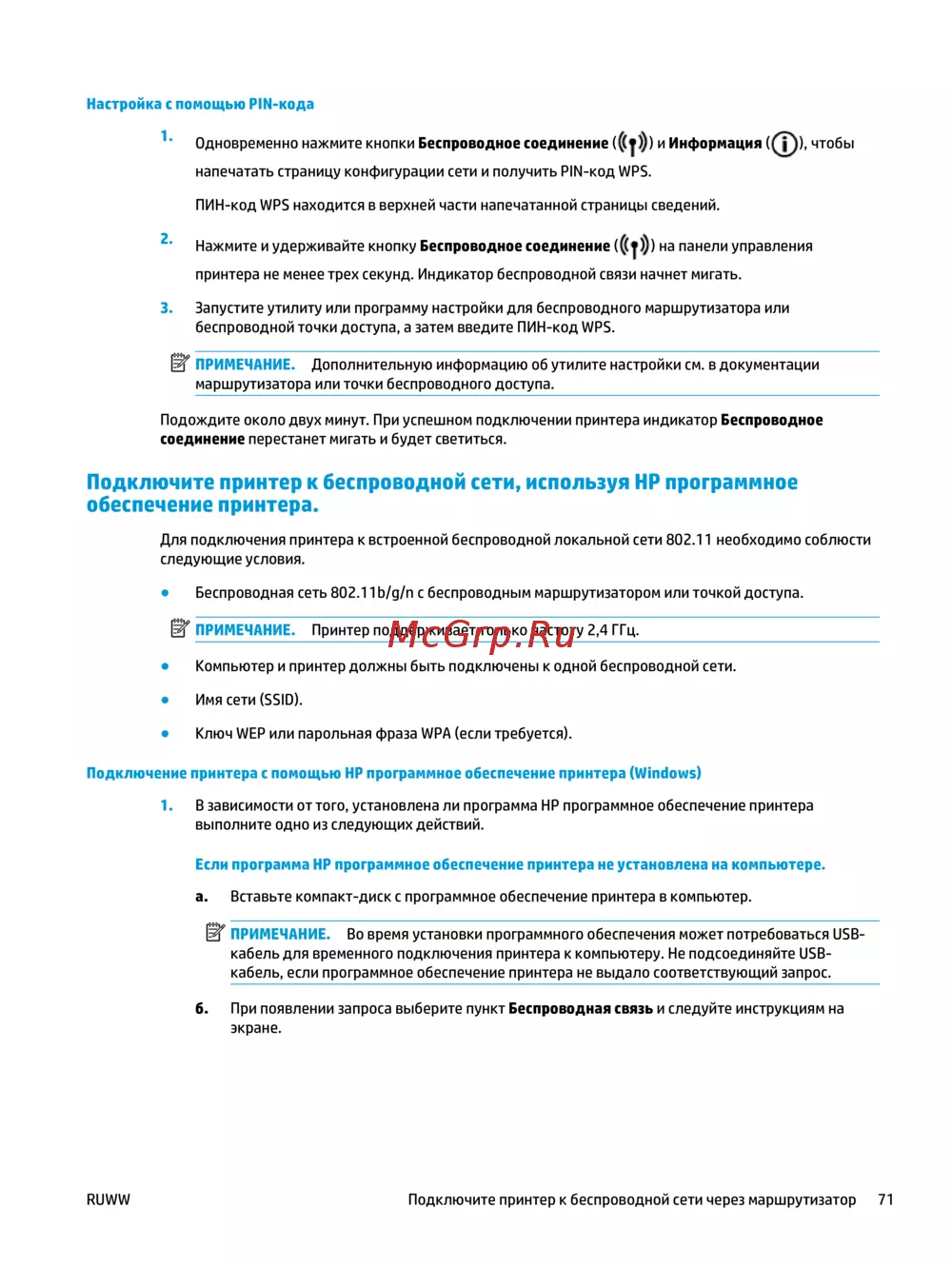 RUWW Подключите принтер к беспроводной сети через маршрутизатор 71
