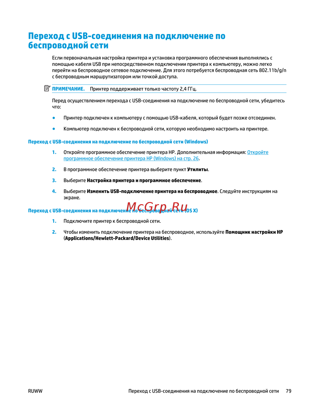 RUWW Переход с USB-соединения на подключение по беспроводной сети 79