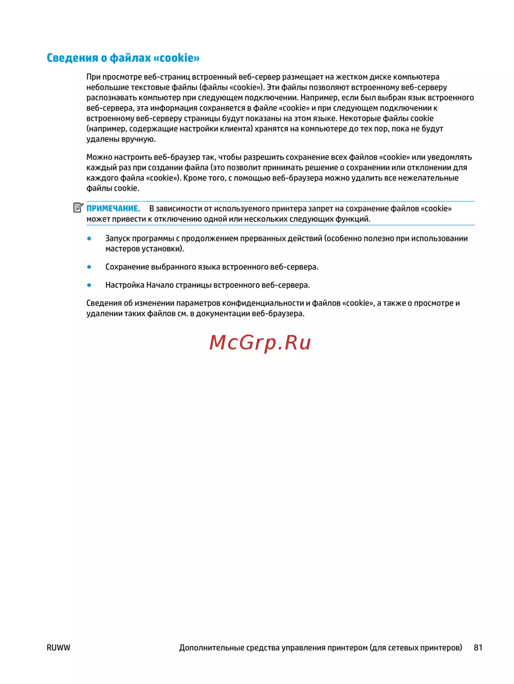 HP DeskJet Ink Advantage 3635 — информация о файлах cookie и их настройках на веб-сервере [87/134]