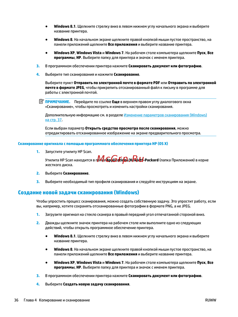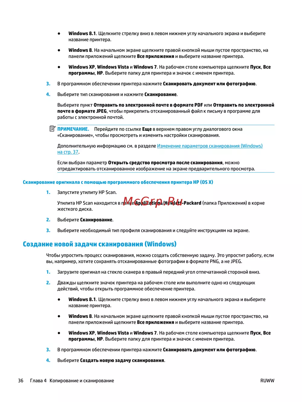 36 Глава 4 Копирование и сканирование RUWW