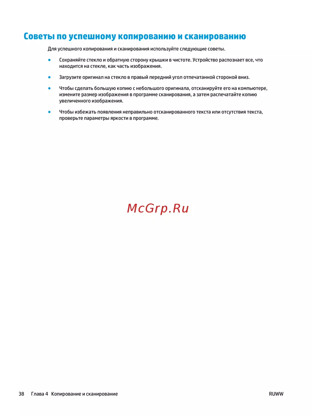 - Советы по успешному копированию и сканированию на стр 38 p.73