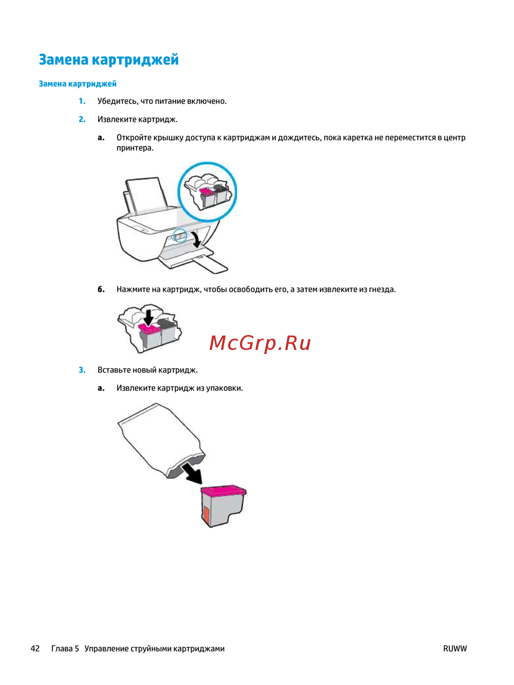 42 Глава 5 Управление струйными картриджами RUWW