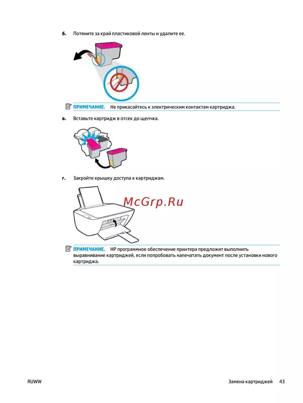 ПРИМЕЧАНИЕ. Не прикасайтесь к электрическим контактам картриджа.
