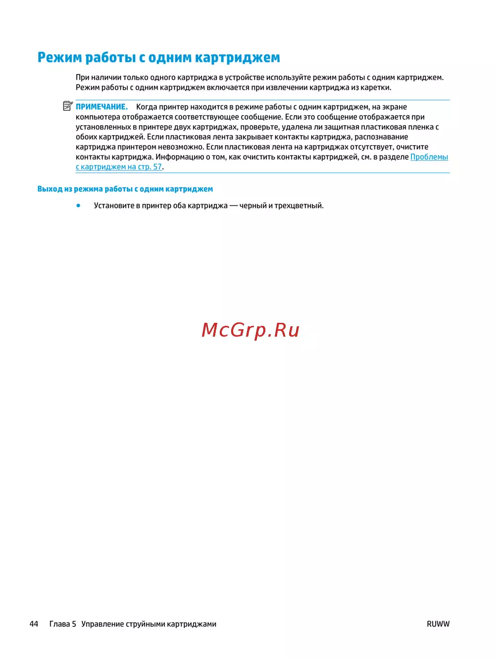 44 Глава 5 Управление струйными картриджами RUWW