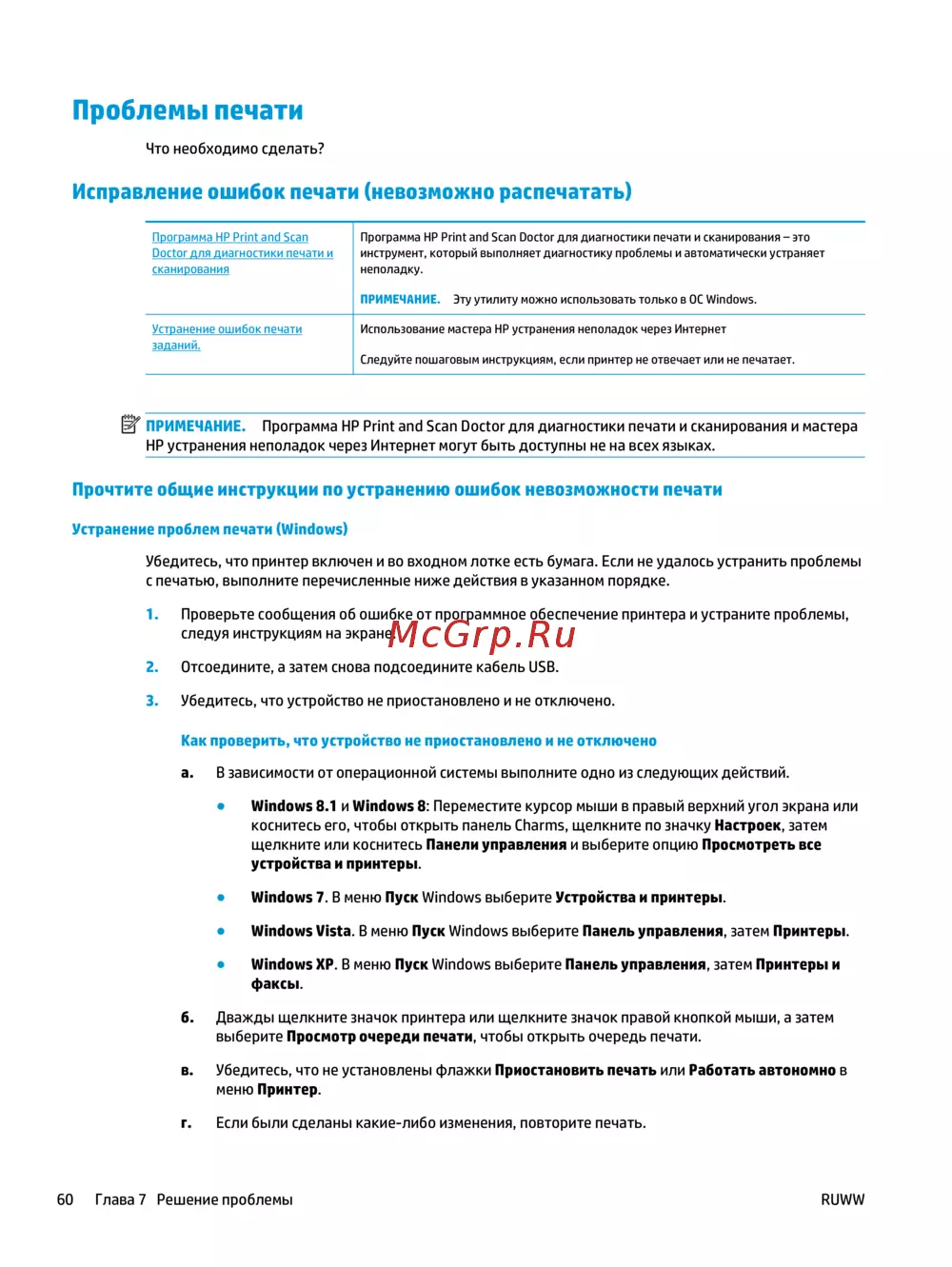 - Примечание программа hp print and scan doctor для диагностики печати и сканирования и мастера hp устранения неполадок через интернет могут быть доступны не на всех языках p.73
