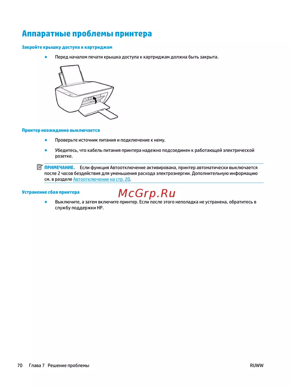 Узнайте, как устранить распространенные аппаратные проблемы принтера, включая отключение, проблемы с питанием и закрытие крышки картриджей. Полезные советы для пользователей.