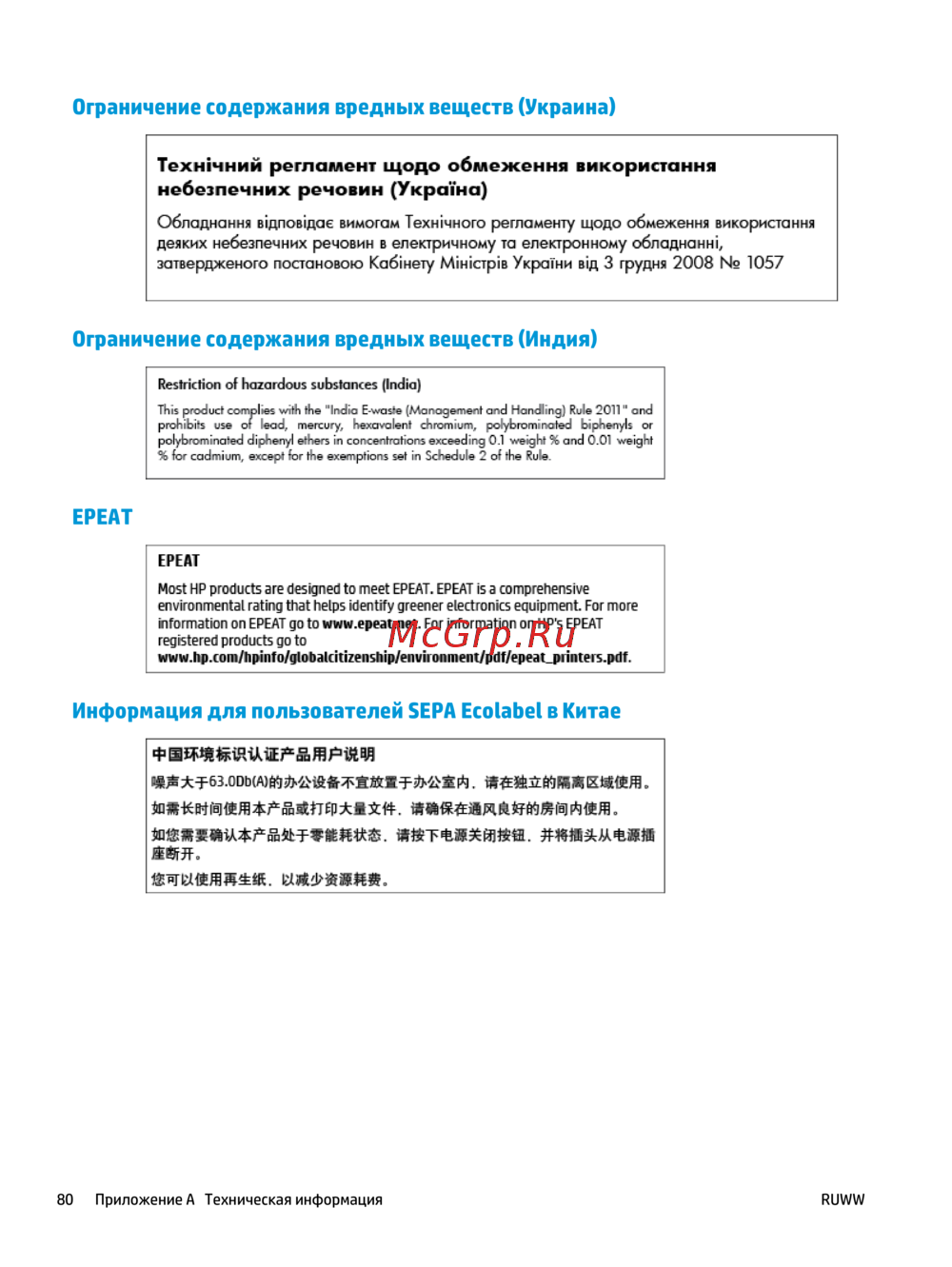 HP DeskJet Ink Advantage 2135 [84/92] Ограничение содержания вредных веществ украина
