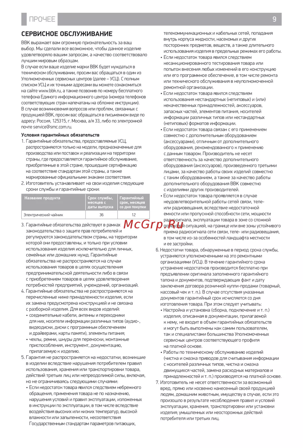 BBK EK1740GD — сервисное обслуживание и гарантия на продукцию [9/12]