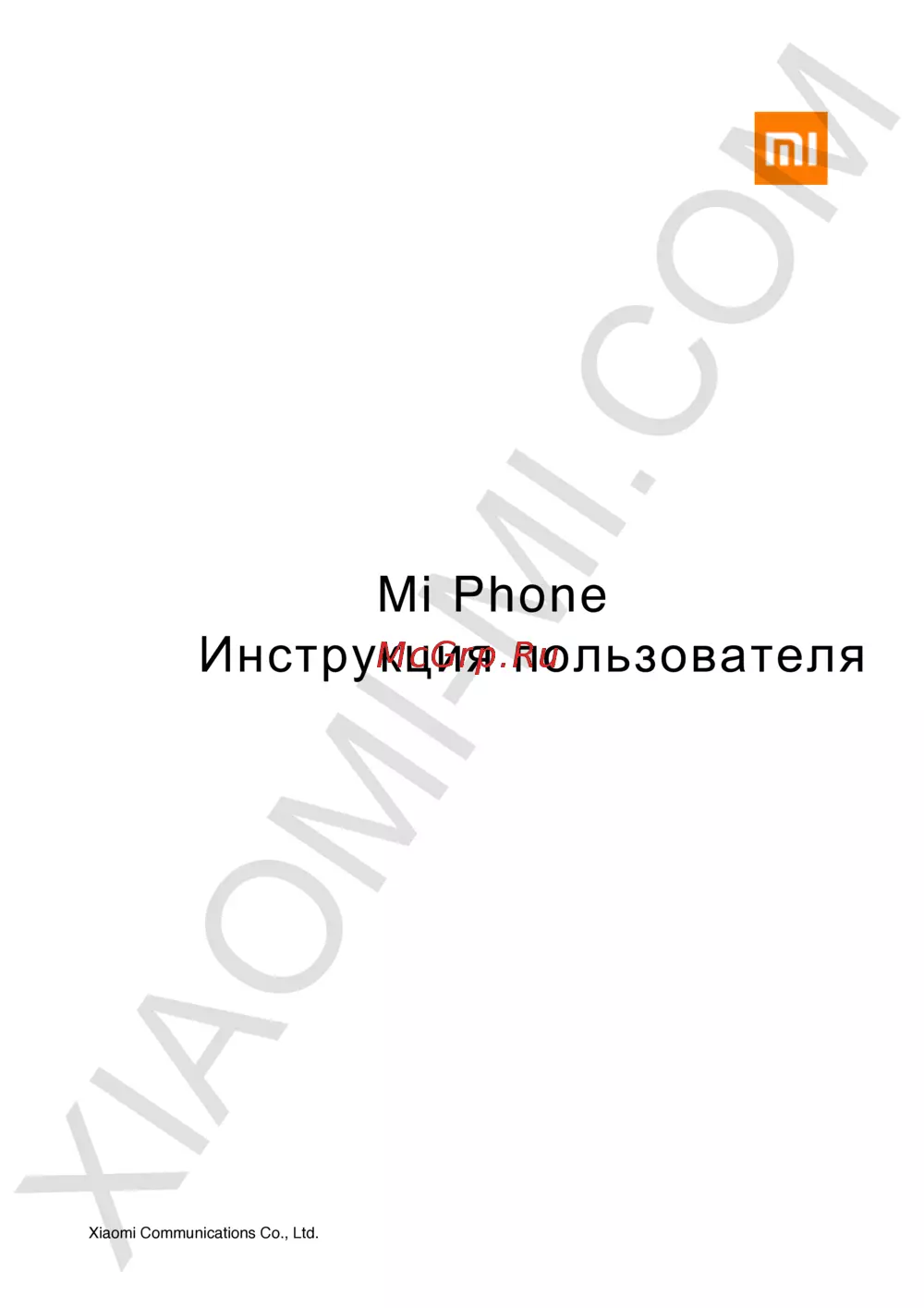 Mi Phone Инструкция пользователя Xiaomi Communications Co Ltd