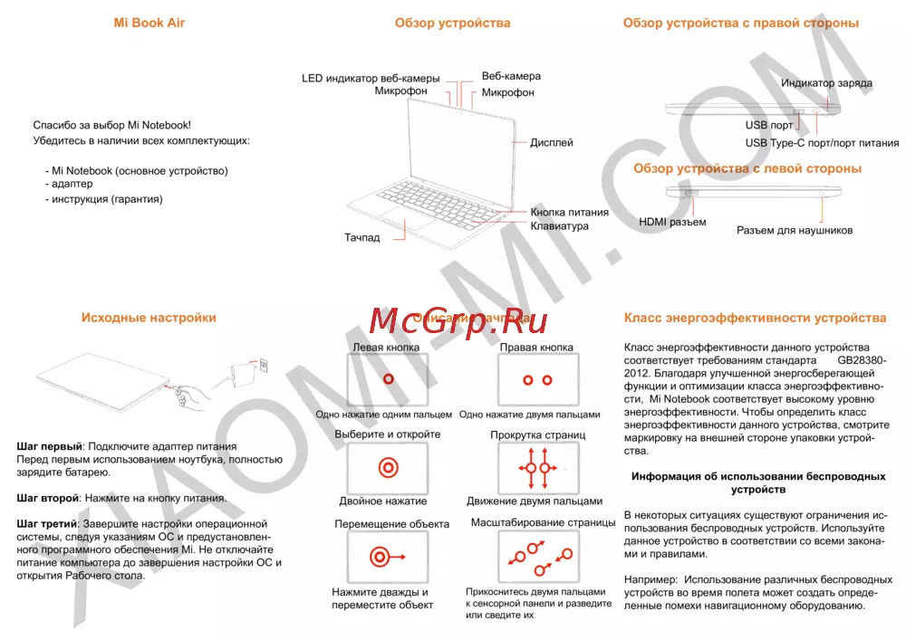 Xiaomi Mi Notebook Air 12.5″Инструкция по эксплуатации -