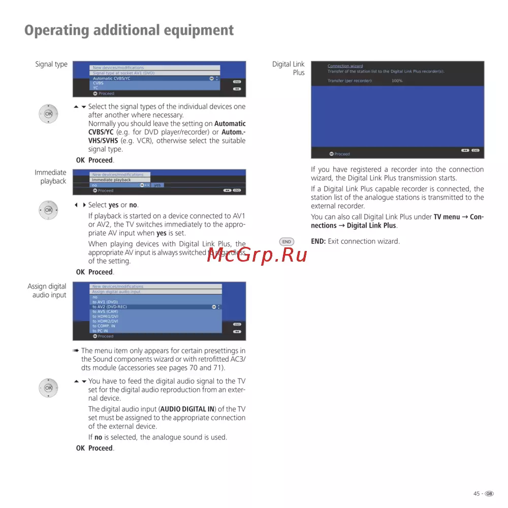 - Before you connect other devices or make any changes please start the connection wizard page 44 and the sound components wizard page 52 and then follow the instructions that are displayed on the tv set p.5