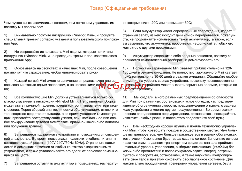 Xiaomi Ninebot Mini — официальные требования к безопасному использованию сегвея [3/7]